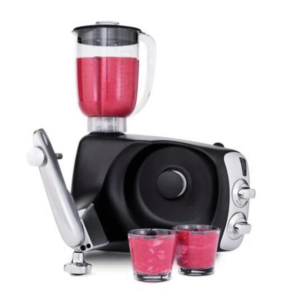The blender is made to vigorously fix everything from chopping chocolate to mixing hummus and smoothies — as often and as much as you want! You can buy the blender seperately or in the deluxe-package together with citrus press, mincer, strainer, cookie press and pasta discs.