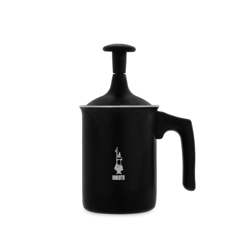 Bialetti Manual Milk Frother makes it simple to create café-quality milk froth at home. Designed with a patented double-disc whisk, it delivers smooth, creamy foam in just a few seconds. The durable aluminium body is painted to resist high temperatures, while the non-stick interior ensures effortless cleaning after every use.