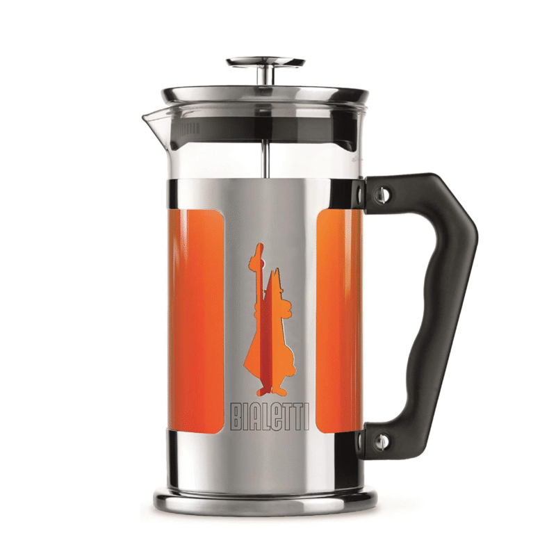 Featuring a borosilicate glass body encased in a durable stainless steel frame, it combines classic Italian craftsmanship with modern elegance. The exclusive handle, inspired by the iconic Moka Express, ensures a comfortable grip, while the “Man with the Moustache” logo adds a touch of Bialetti heritage. Designed for convenience, the removable glass beaker is dishwasher-safe and easy to clean.
