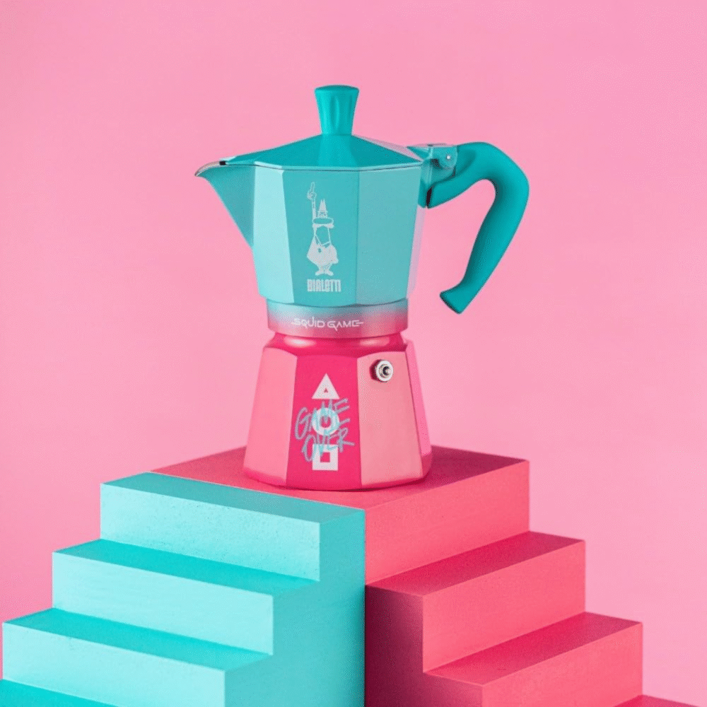 - Iconic 3-Cup Moka Pot: Classic stovetop espresso maker produces up to 3 cups (130 ml) of authentic Italian coffee, combining traditional Bialetti design with vibrant Squid Game-inspired colours