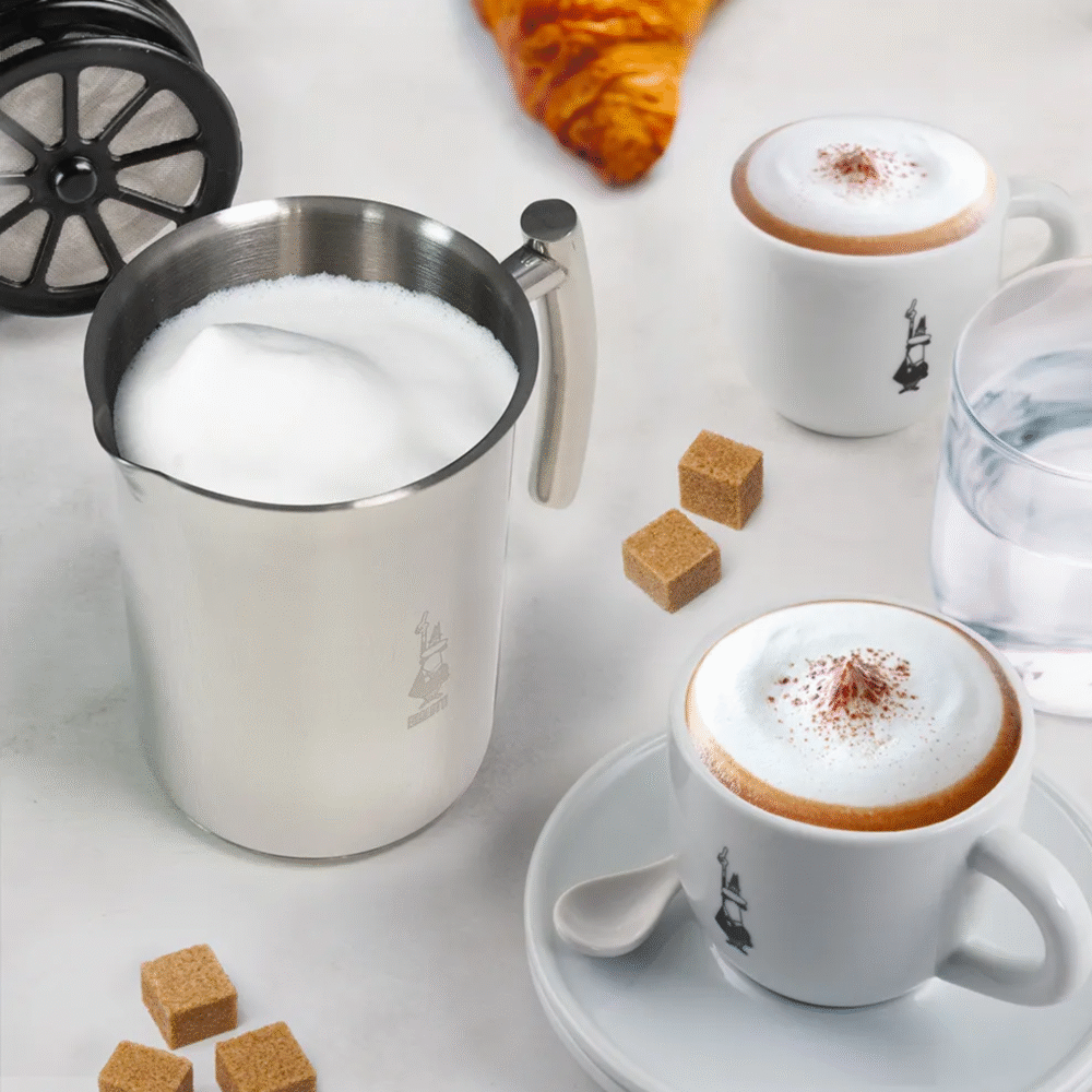 Create creamy, frothy milk effortlessly with the Bialetti Stainless Steel Milk Frother. Crafted from high-quality stainless steel, this frother is durable, easy to clean, and suitable for all stovetops, including induction. Its ergonomic handle ensures safe pouring, while the precision spout lets you create café-style latte art at home. Perfect for cappuccinos, lattes, hot chocolate, or any milk-based drinks, this frother turns everyday beverages into a gourmet experience.
