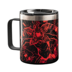 The 420ml tumbler with handle is ideal for taking your favourite drink with you. The smoke coloured lid ensures that the drink maintains its temperature and does not spill out. The product is double-walled, so the temperature is maintained even better. Thanks to its handle, it is also perfect for outdoor activities. The luminous effect makes it simply unique: in the dark the Demogorgon glows intensely blue and makes the coffee break even more incredible.
