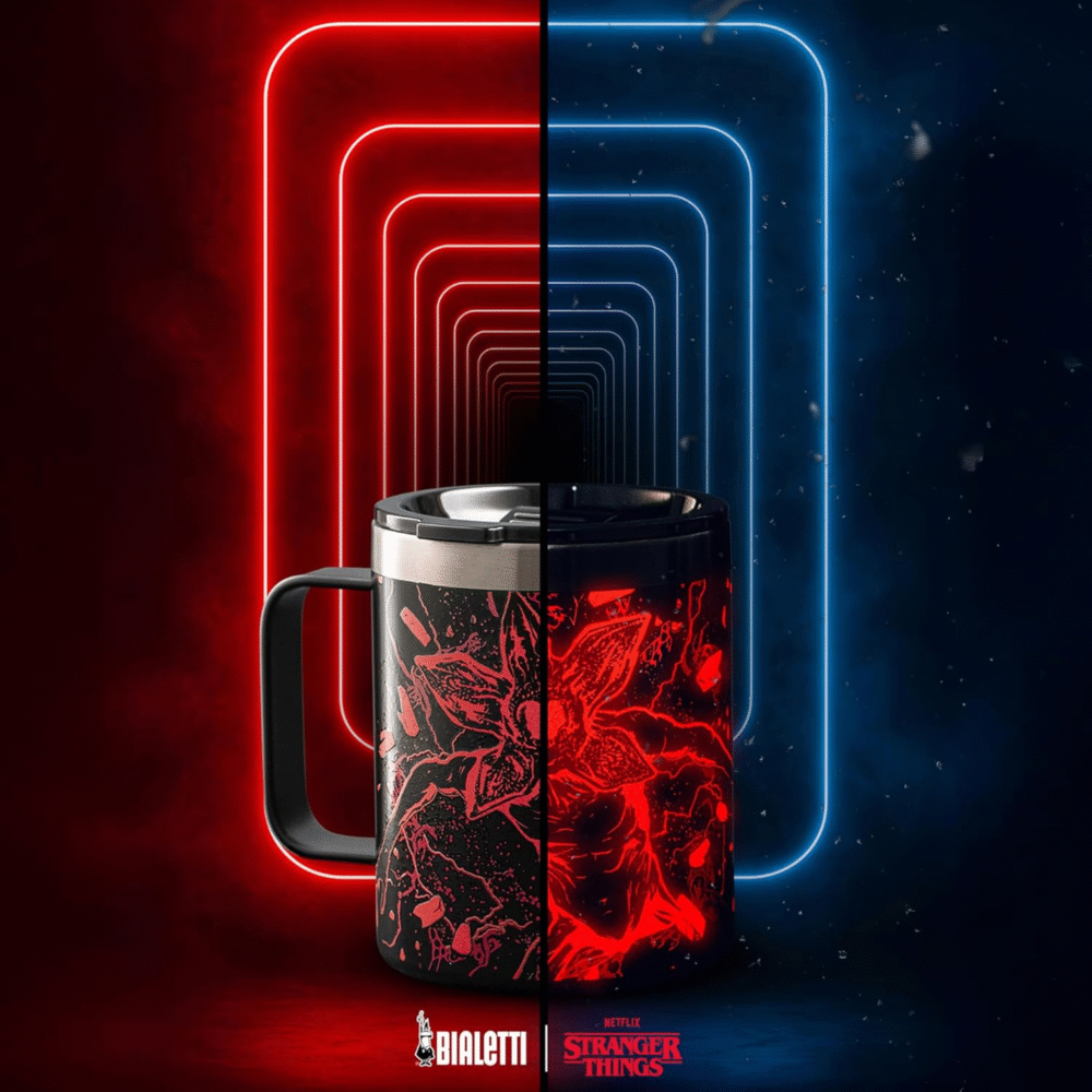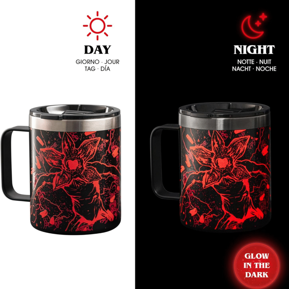 or lovers of coffee to go, the new Capsule Collection Stranger Things offers truly unique items that should not be missed. The range includes 4 items in double-walled stainless steel with luminous effect: the shadow world awakens in the dark!
