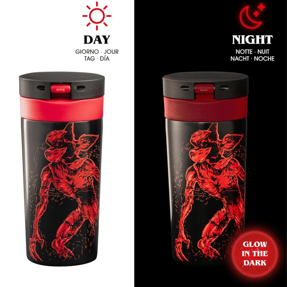 For lovers of coffee to go, the new Capsule Collection Stranger Things offers truly unique items that should not be missed. The range includes 4 items in double-walled stainless steel with luminous effect: the shadow world awakens in the dark!