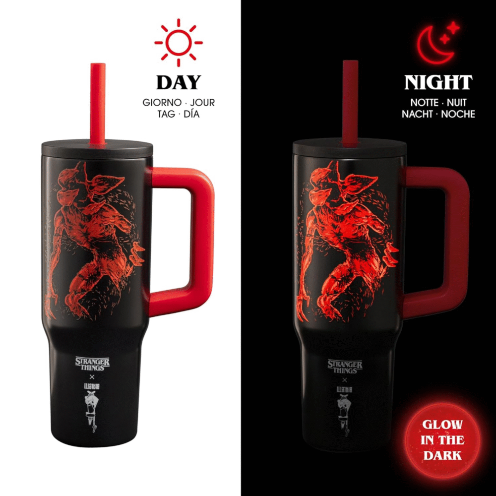 For lovers of coffee to go, the new Capsule Collection Stranger Things offers truly unique items that should not be missed. The range includes 4 items in double-walled stainless steel with luminous effect: the shadow world awakens in the dark!