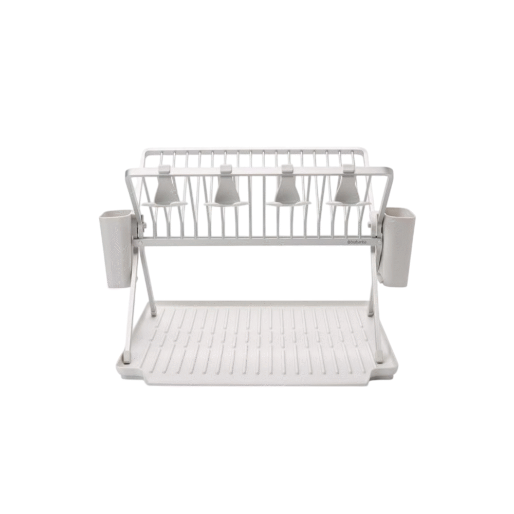 The dishes don’t wash themselves – but they do dry naturally! Just leave them on this large Brabantia SinkSide Foldable Dish Drying Rack with drip-tray. It happily holds up to 17 plates and has a hanging space for 4 wineglasses. The two baskets for drying cutlery are removable, making it easy to collapse the rack and tidy it away. The loose drip-tray prevents your countertop from getting wet and drains directly into the sink – a rocking rack.