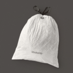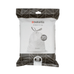 Brabantia PerfectFit bin bags are perfectly tailored to fit your Brabantia waste bin, and made to make life easier. That’s why they are extra strong, come in a convenient dispenser pack, and have a handy tie-tape too! Just pull it to remove the bag from the bin and seal it. Not certain of which size you need? Simply check the colour code on the inside of your waste bin’s lid. Great bin bags, perfectly fitting your Brabantia bin.