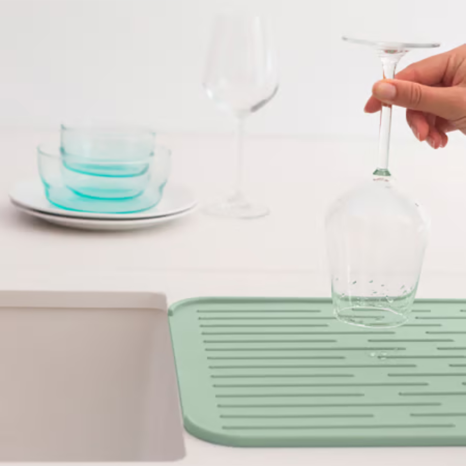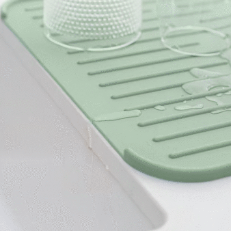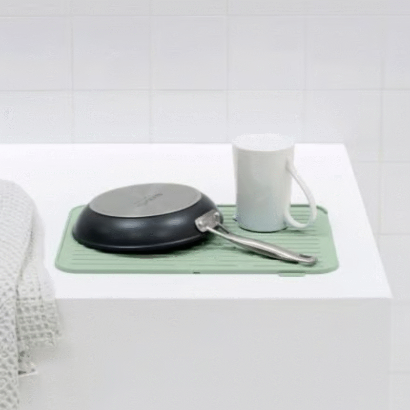 Need some extra draining space? Just whip out this Brabantia SinkSide Silicone Dish Drying Mat. Soft and non-skid so less chance of chipping. The silicone is durable, easy to clean, dishwasher safe and foldable too. Simply a must-have mat.