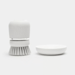 Doing the dishes is easy with this Brabantia SinkSide Soap Dispensing Dish Brush! Push the button to release the amount of dishwashing liquid you need and brush away. The durable polyester bristles are sturdy enough to scrub, but soft enough not to scratch. All done? Keep your brush handy in its smart stand. A sturdy buddy for quick washing-up tasks.