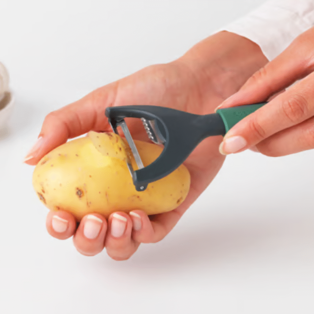Cooking is even more fun with this Brabantia Tasty+ Food Y-Peeler plus Zester. It peels vegetables like courgettes and cucumbers like a charm, and it even has a built-in zester. For peeling with zest!