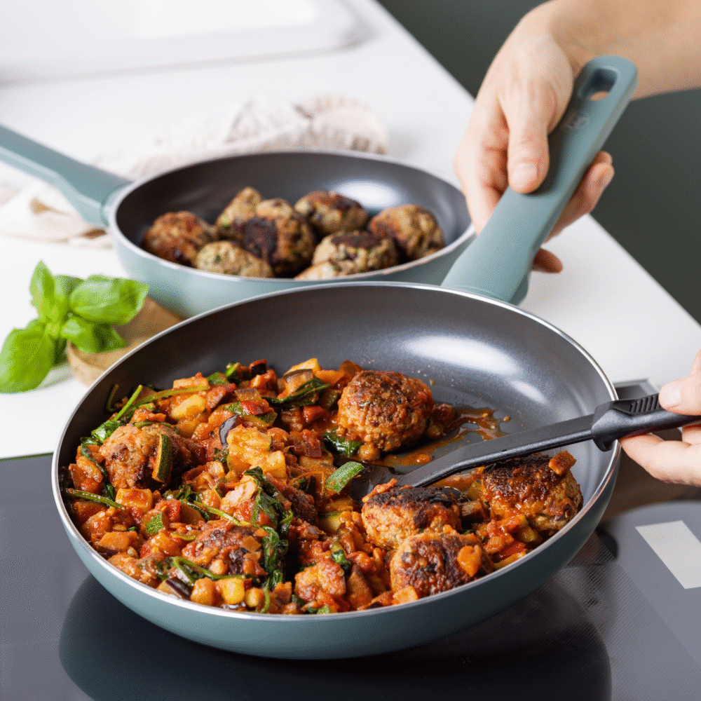Each pan features our PFAS-free Thermolon™ ceramic non-stick coating: use little oil or butter, cook worry-free and enjoy effortless cleanup. Designed for those who care about what they cook with.