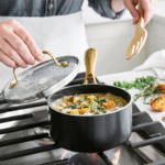 The GreenPan Studio Collection features state-of-the art technology, with an added dash of extra-stylish design. (Note: the stunning gold-tone handles, which have a corrosion-resistant finish) Throughout the line, the ceramic nonstick coating boasts diamond-enhanced layers for added durability. And the heavy-gauge aluminium bodies deliver excellent heat conduction. All of GreenPan’s cookware, this line is free of PFAS, PFOA, lead, and cadmium.