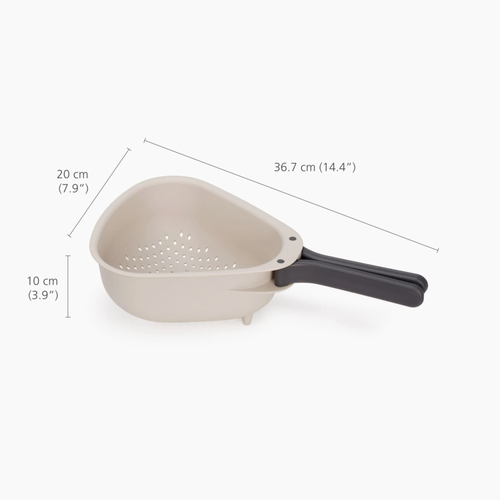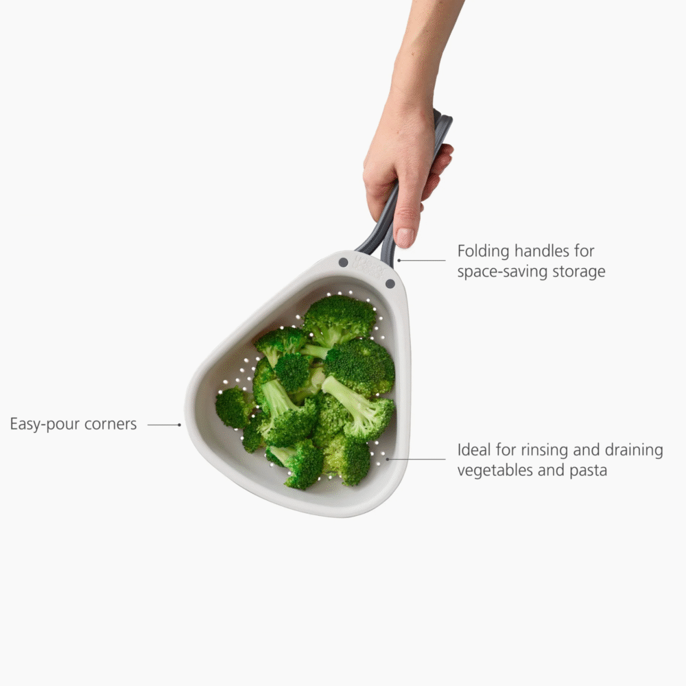 This folding-handle colander is perfect for rinsing larger items like veggies and pasta, then it folds flat for easy storage.