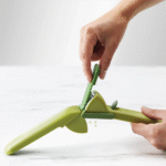 This powerful garlic press crushes cloves with ease and features a wiper blade and a handy scraping tool for easy cleaning.