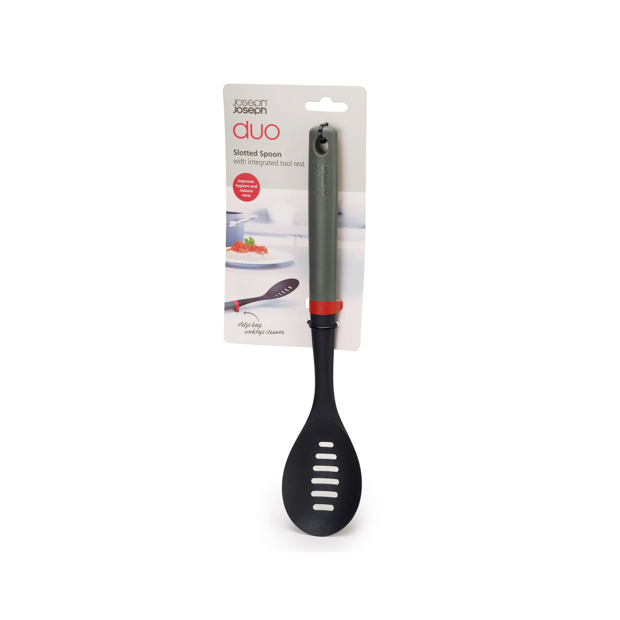 Expertly designed to elevate everyday cooking, the Joseph Joseph Duo Elevate Slotted Spoon offers exceptional performance with every use.