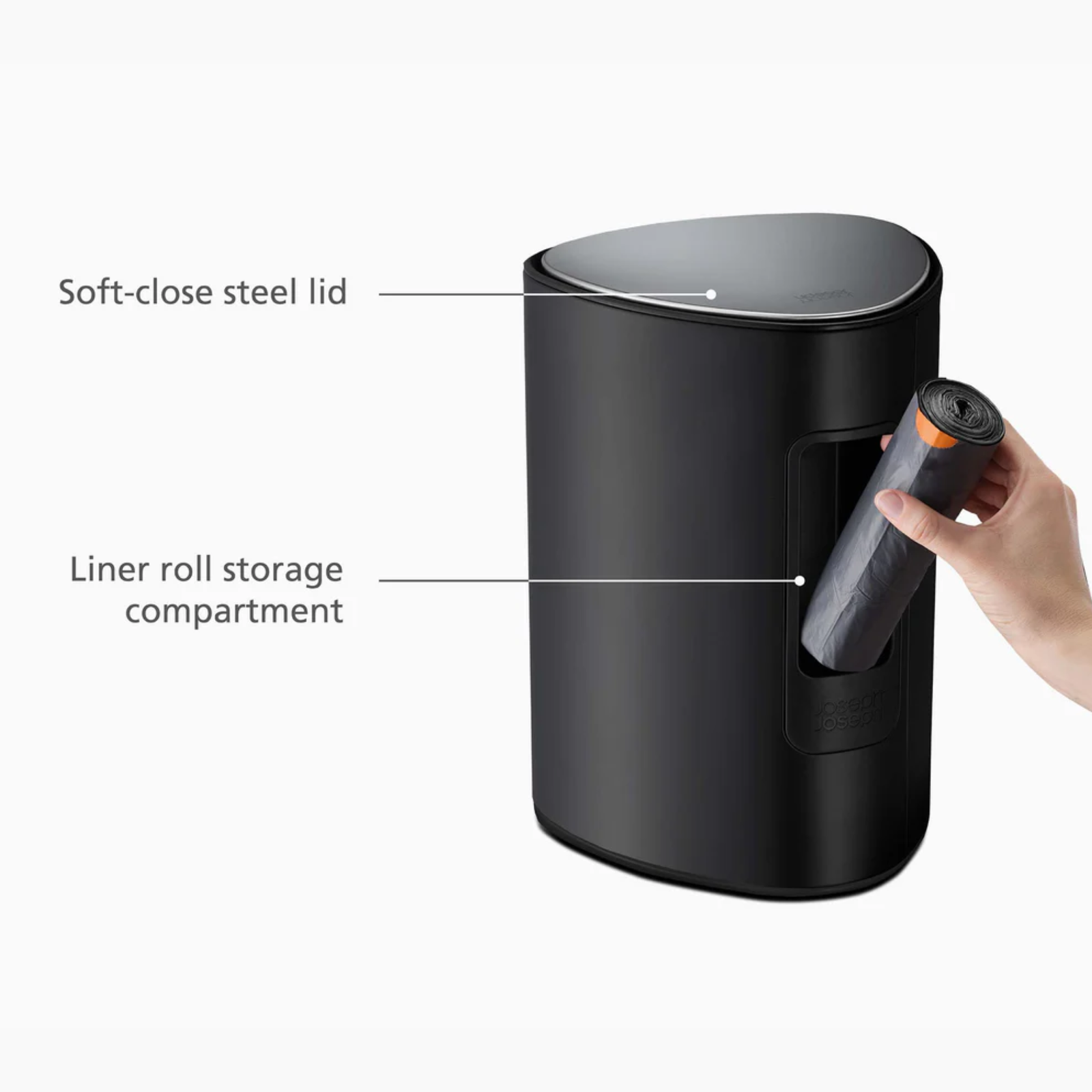 - Pocket on the rear is perfect for storing a roll of Joseph Joseph IW8 custom-fit bin liners.
