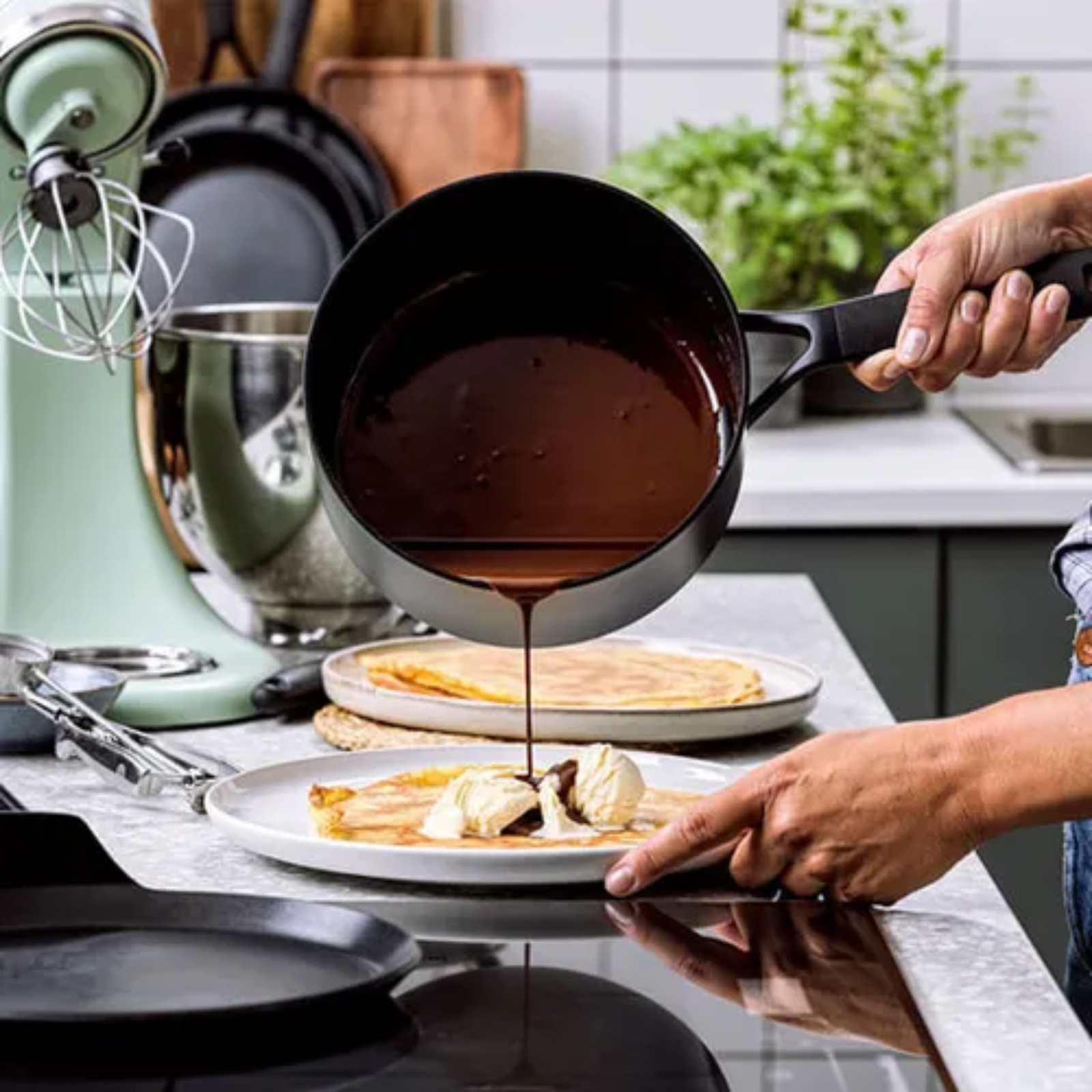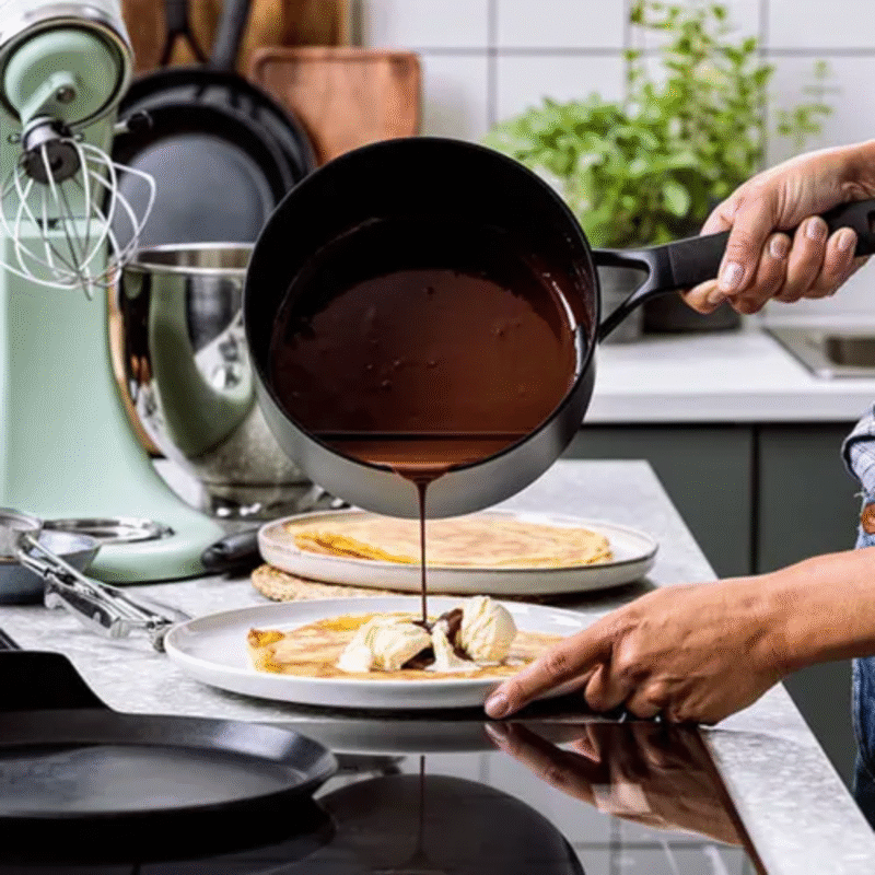 With an extra thick forged base, the KitchenAid Classic Forged Ceramic Non-Stick 16cm/1.5 Litre Saucepan heats up quickly and evenly for perfect frying results. This forged aluminium saucepan has a ceramic, PFAS free, non-stick coating which provides easy food release and fast clean-up. Suitable for all heat surfaces, including induction, this great looking saucepan is also oven safe to 160°C and has a 1.5 litre capacity.