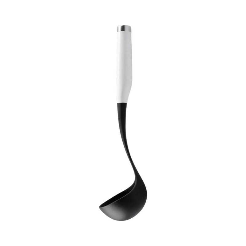 The KitchenAid ladle is ideal for serving sauces, soups, stews, dressings and sauces. This strong and durable ladle can be safely used on all cookware, including non-stick cookware, and is heat resistant up to 450 degrees Fahrenheit.