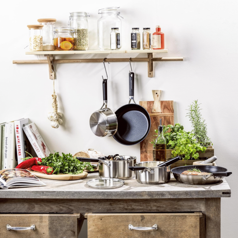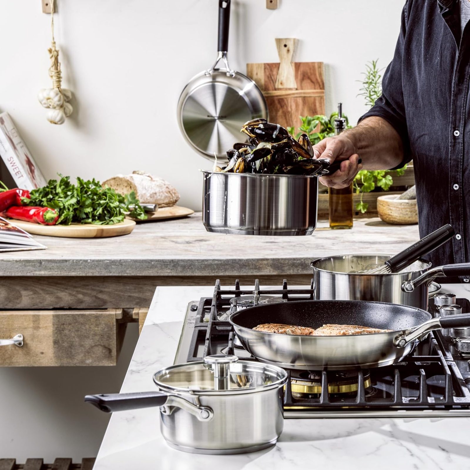 The KitchenAid Classic Stainless Steel collection has a stainless steel induction base with aluminium core for perfect results on all stovetops.