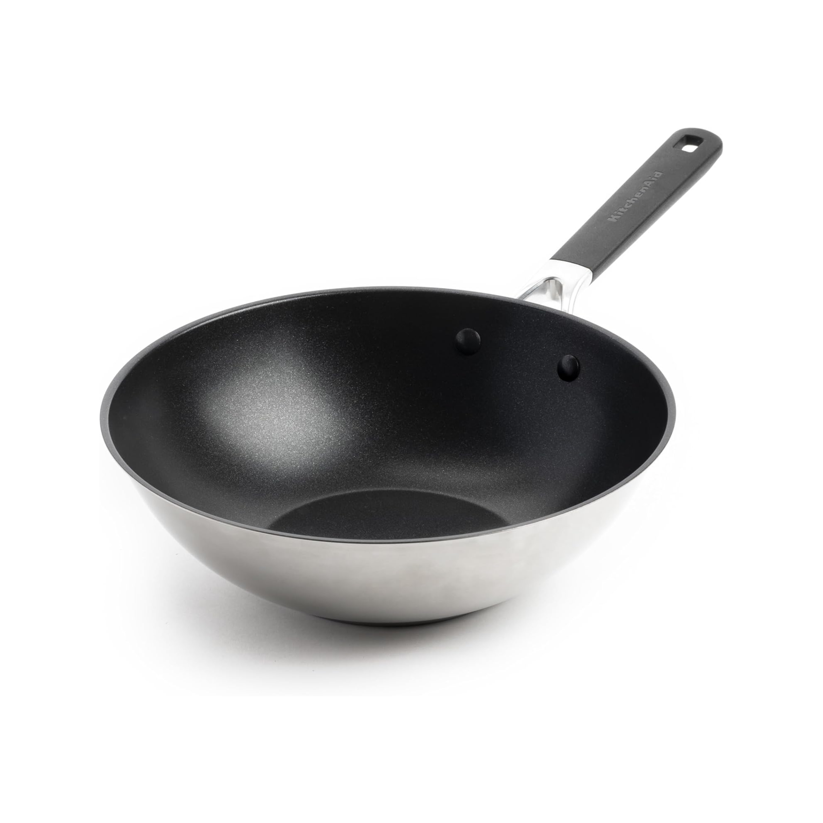 The KitchenAid Classic Stainless Steel collection has a base with an aluminium core which heats up quickly and evenly for perfect results, on all stovetops. High-quality scratch-resistant cooking surface is metal utensil safe and stands up to intensive daily use Curved rim for easy drip-free pouring. V-shaped and stay-cool stainless steel handles for comfort and secure grip.