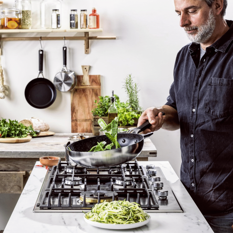 Healthy Ceramic Non-stick coating for easy food release, free of any PFAS-chemicals. Better for your health and for the environment. Heavy gauge stainless steel induction base with aluminium core: for fast and even heating.