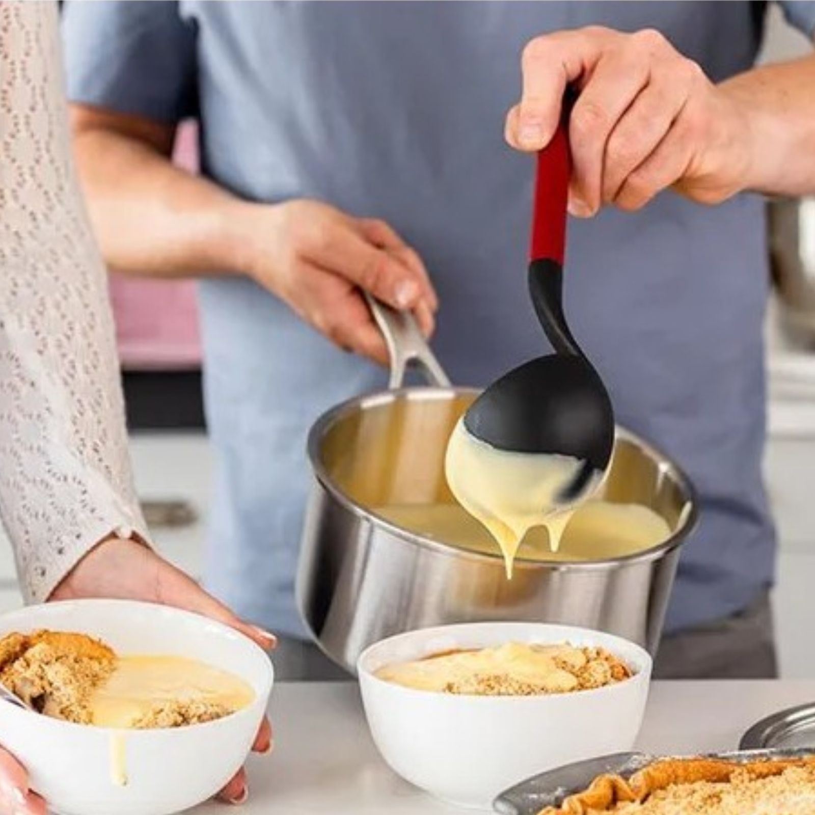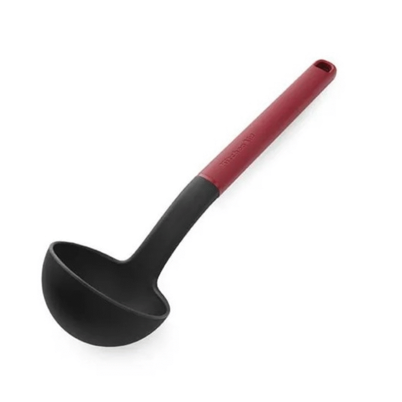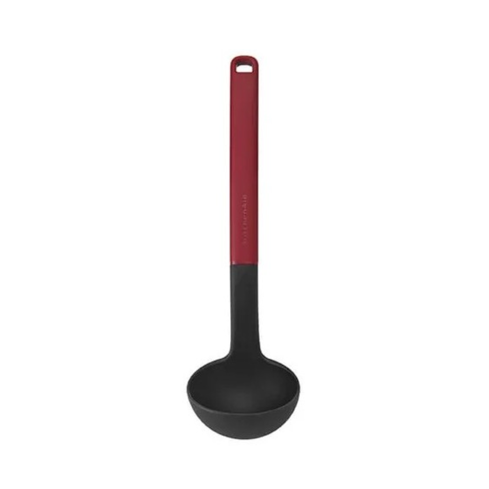 The KitchenAid Core Ladle is ideal for dishing out gravies, soups, stews, dressings, and sauces. This strong, durable ladle is safe to use on all cookware, including non-stick, and is heat resistant to 232°C/450°F. The glossy handle features a debossed logo, as well as a satin chrome-plated bolster and a hanging loop. It’s dishwasher-safe for easy cleanup.