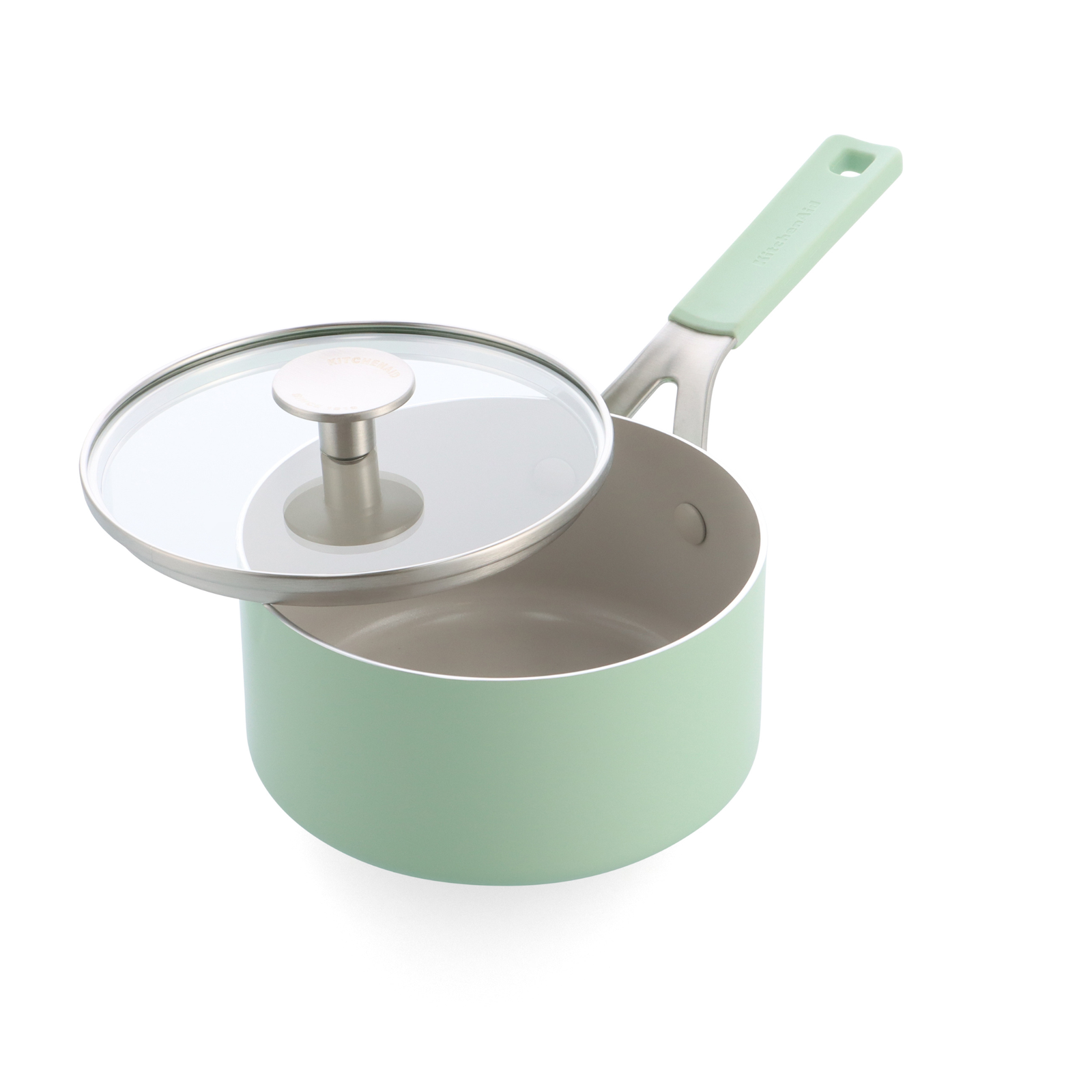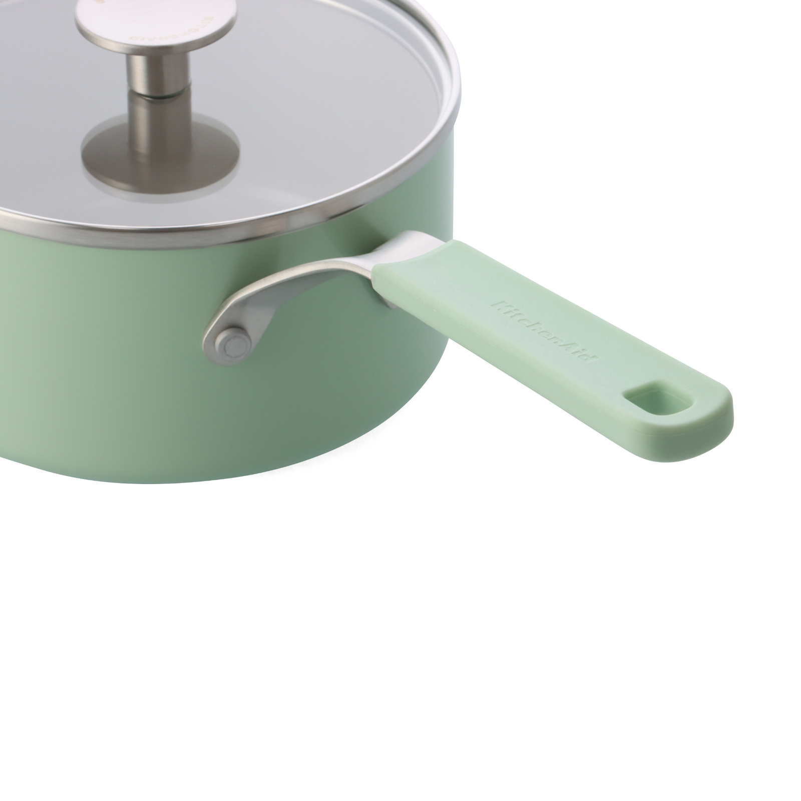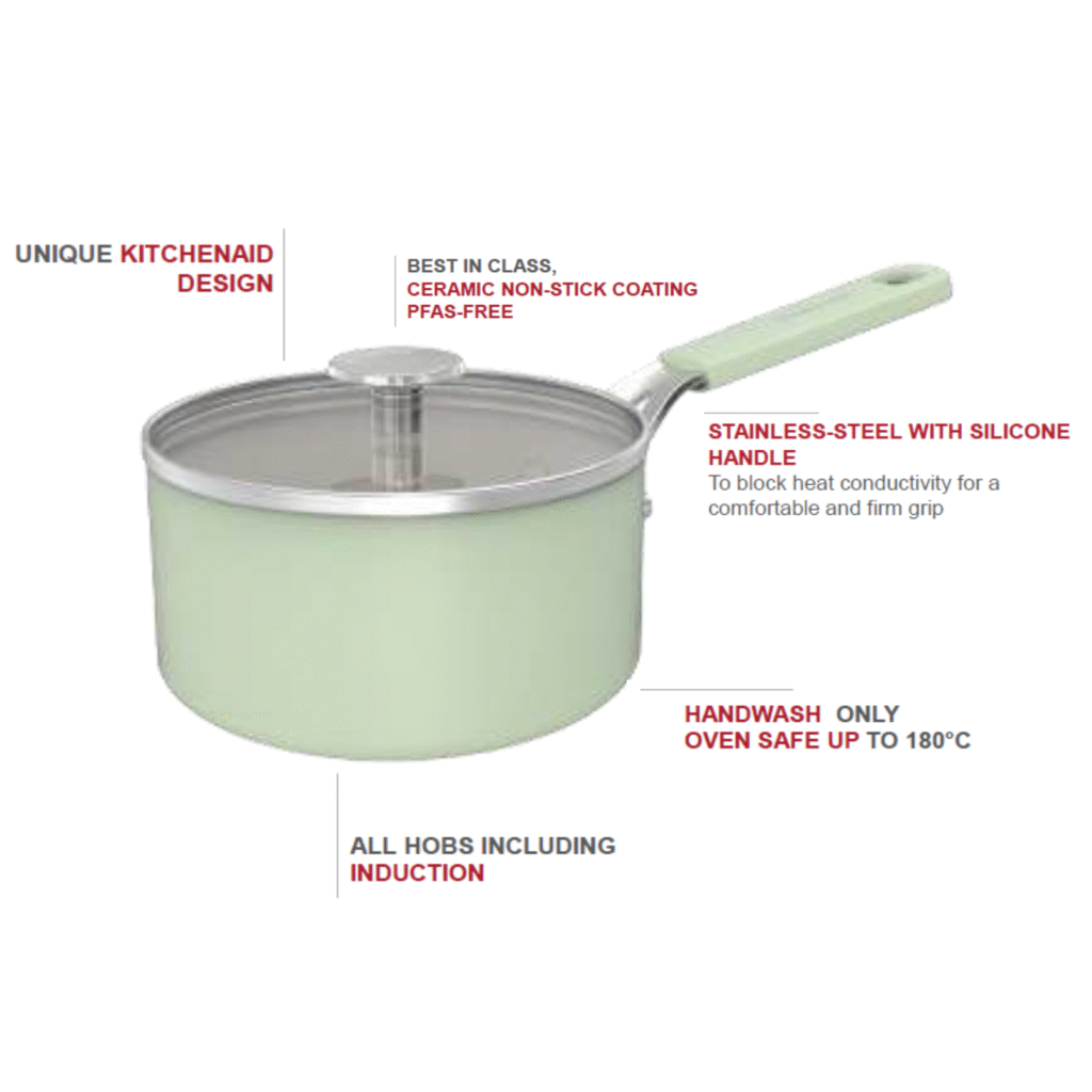 The KitchenAid Colored Aluminium Range has an extra thick forged base that heats up quickly and evenly for PERFECT FRYING RESULTS. A ceramic non-stick coating without PFAS provides EASY FOOD RELEASE and FAST CLEAN-UP.