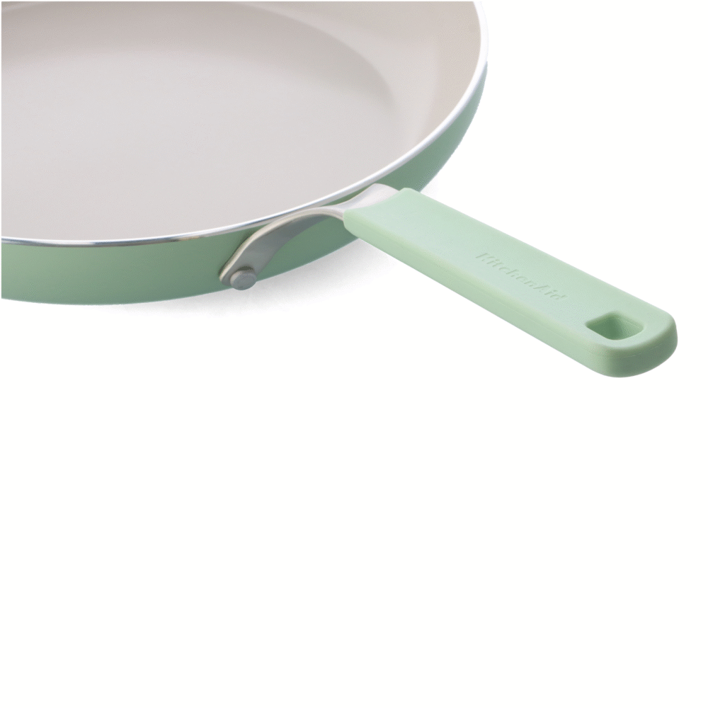 The KitchenAid Colored Aluminium Range has an extra thick forged base that heats up quickly and evenly for PERFECT FRYING RESULTS. A ceramic non-stick coating without PFAS provides EASY FOOD RELEASE and FAST CLEAN-UP.