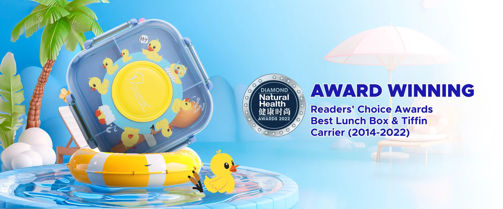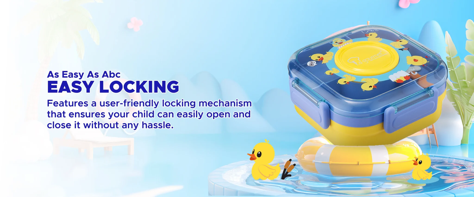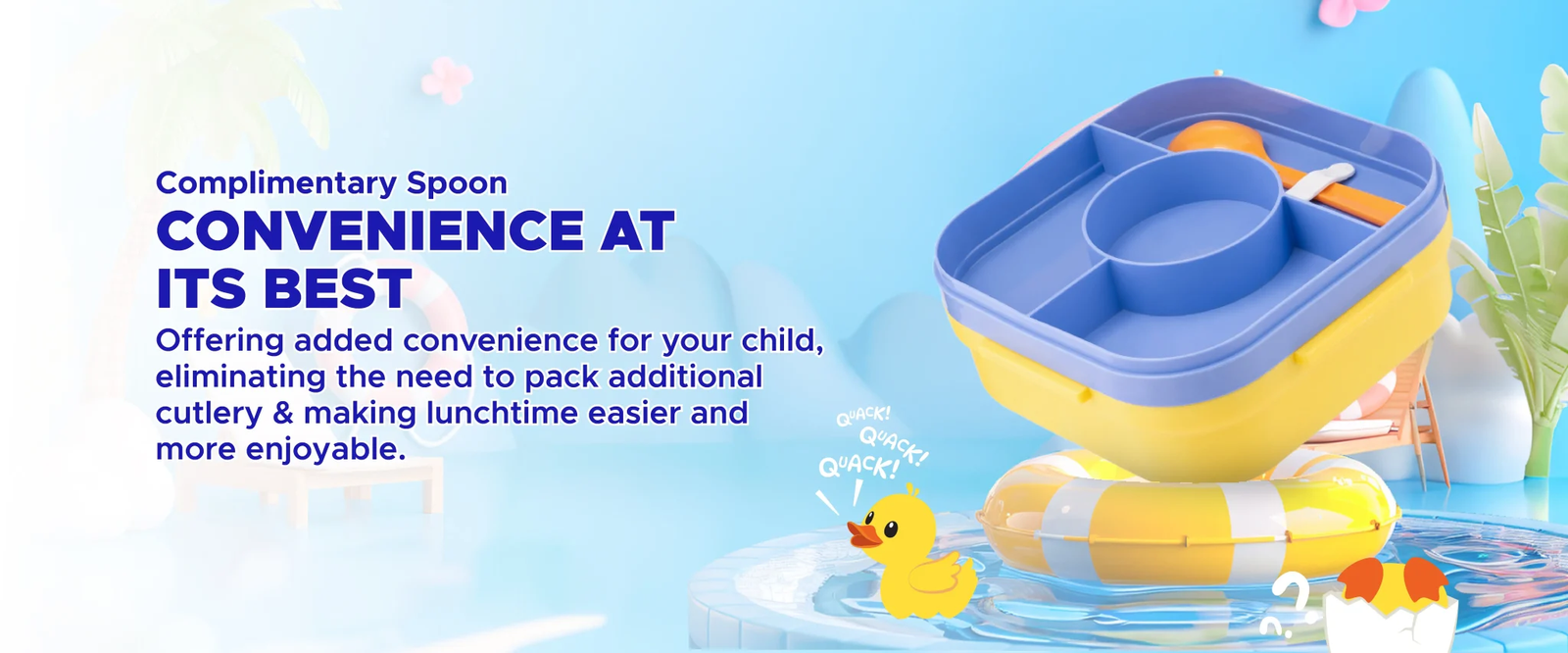 La gourmet Sassy Kids 1250ml 3 Compartment Lunch Box with Spoon – Duck