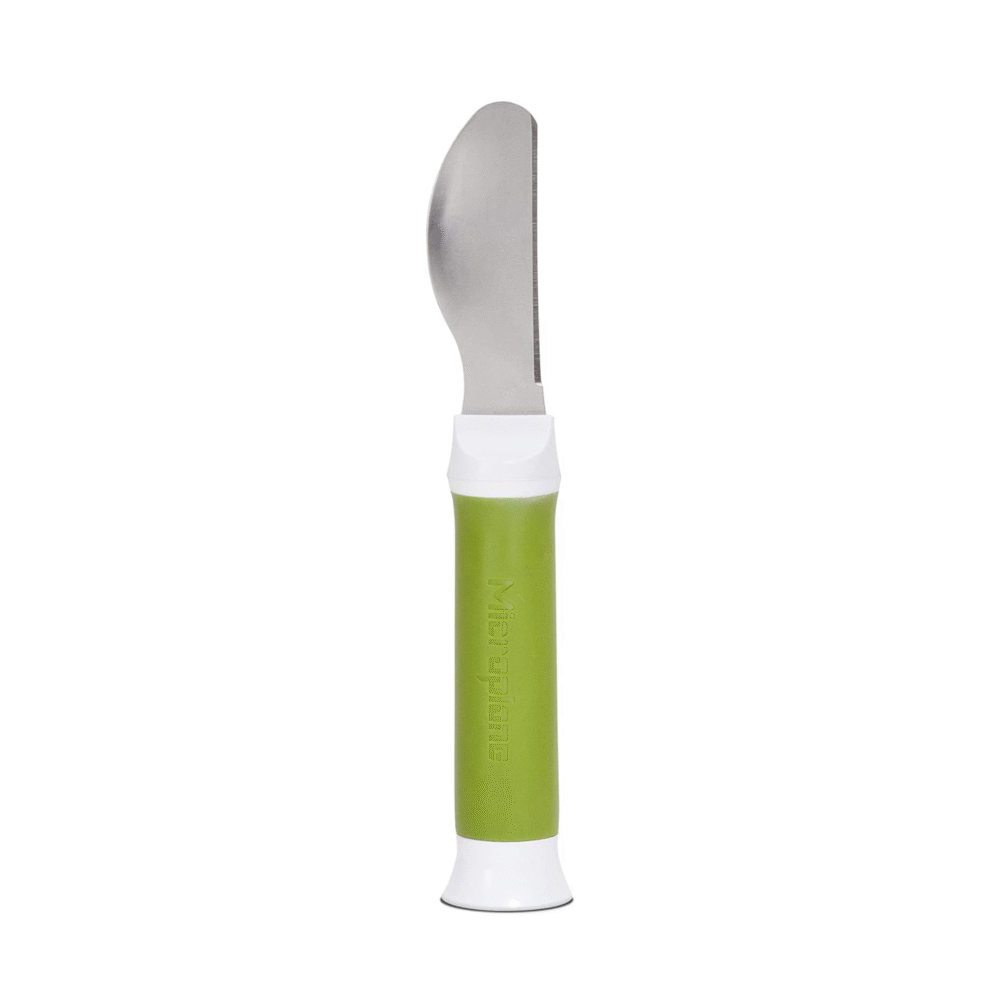 The Avocado Tool from Microplane features a straight edge blade with an exaggerated wide curve and rounded tip to effortlessly slice through avocado’s tough skin and scoop the flavorful flesh inside. Three prongs at the base of the tool safely and easily handle the tricky task of pitting the avocado without resorting to using knives. Crafted in bright green with white accents, the space saving, wand-style Avocado Tool features a soft touch handle for a comfortable and secure grip. For easy cleanup, it is also dishwasher safe.