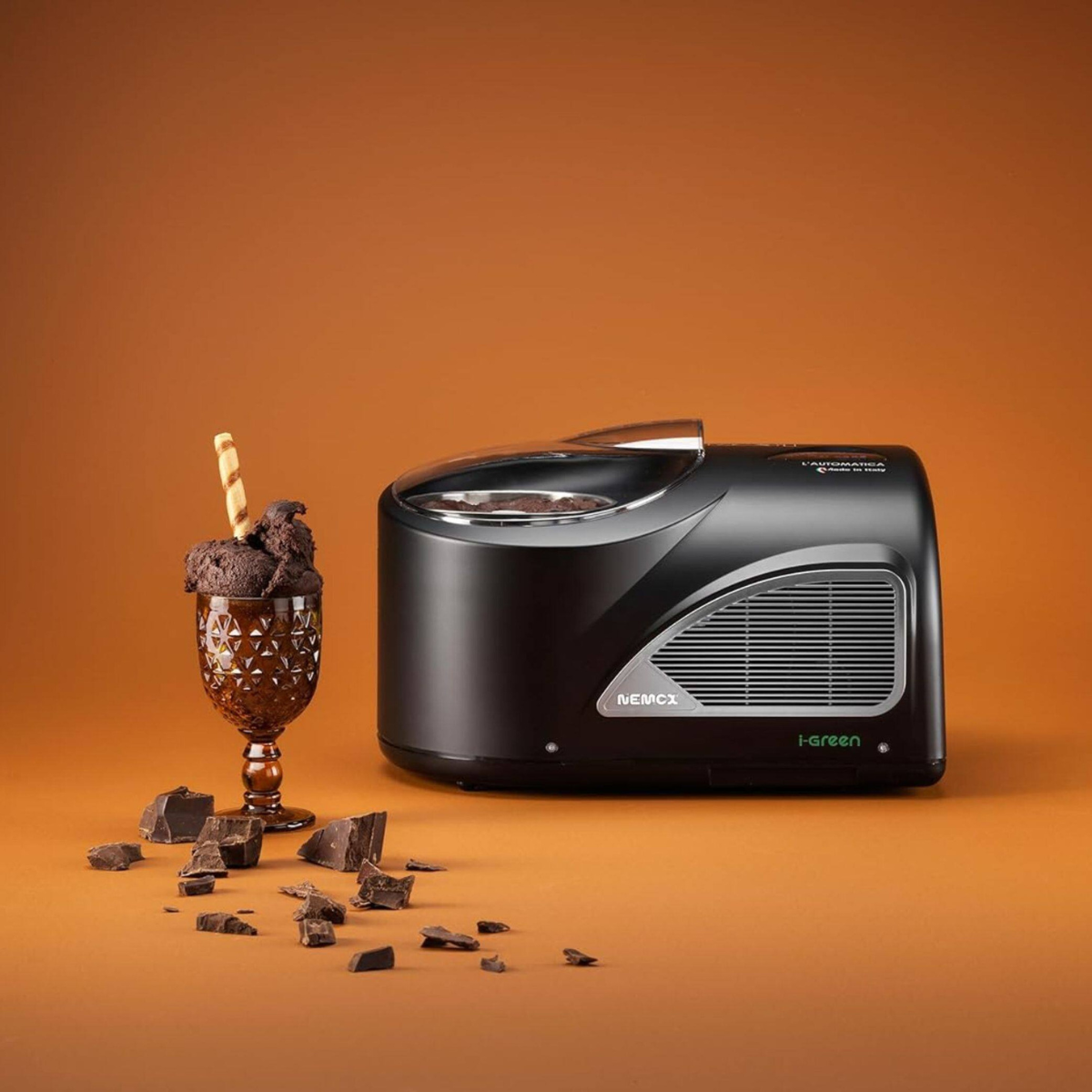 The machine automatically manages the paddle and the cold system during the storage phase. Gelato can be stored for a maximum period of 8 hours, after which the machine switches off automatically. The colors are the most popular in the home ambience, white, red, silver and black, now it is also available in the new Green, I-green color. Gelato NXT1 i-Green has the possibility of using the fixed bowl and the removable bowl, both made in AISI 304 stainless steel, absolutely hygienic and scratch-resistant.