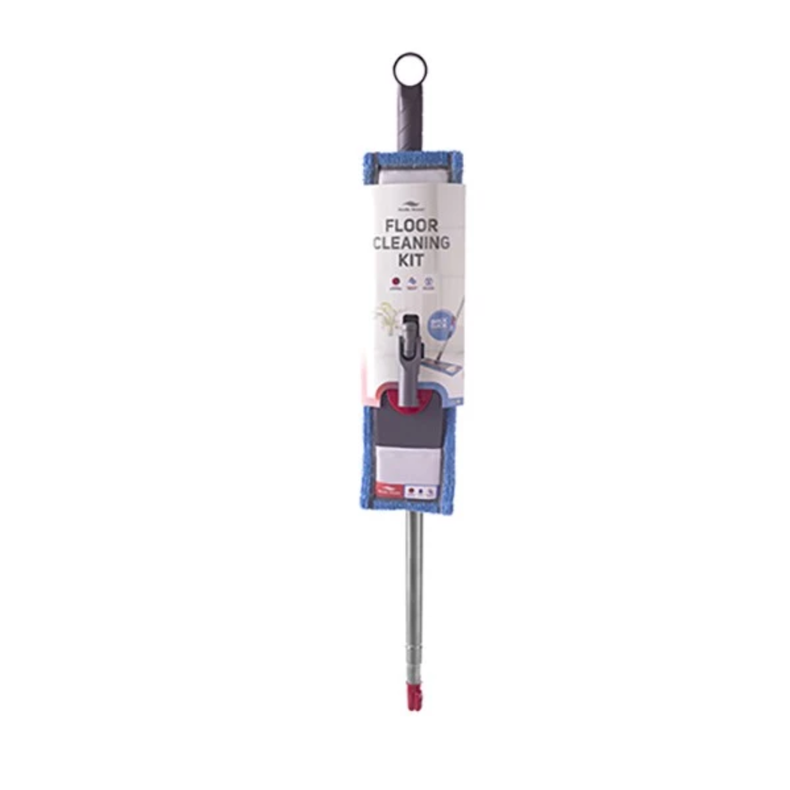 A modern and efficient cleaning kit for wet mopping. The kit includes a sturdy 160cm stainless steel handle with ergonomic grip.