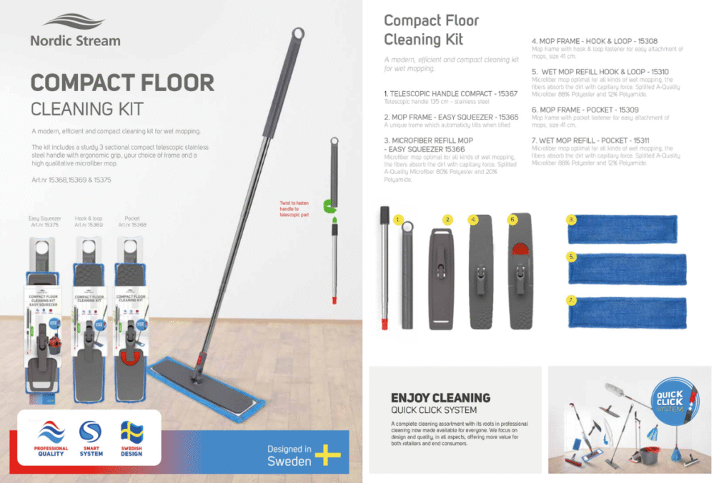 Nordic Stream Floor Cleaning Kit 160cm – Pocket Version
