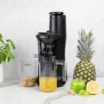 Whisper-quiet operation, compact vertical design, and dishwasher-safe components make this juicer a bold addition to any kitchen. Includes juice container, pulp container, pusher, and brush to get started immediately.