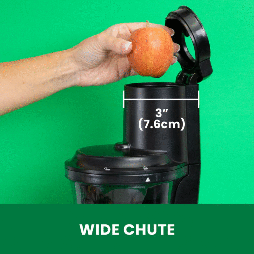 The Omega Juicer BMJ crushes the competition with its 55 RPM cold press technology that locks in nutrients and enzymes your body craves. Feed whole fruits and vegetables through the 3-inch mouth—no chopping required. High torque extraction squeezes every drop of juice from your produce, while the anti-clog reverse function keeps things flowing.