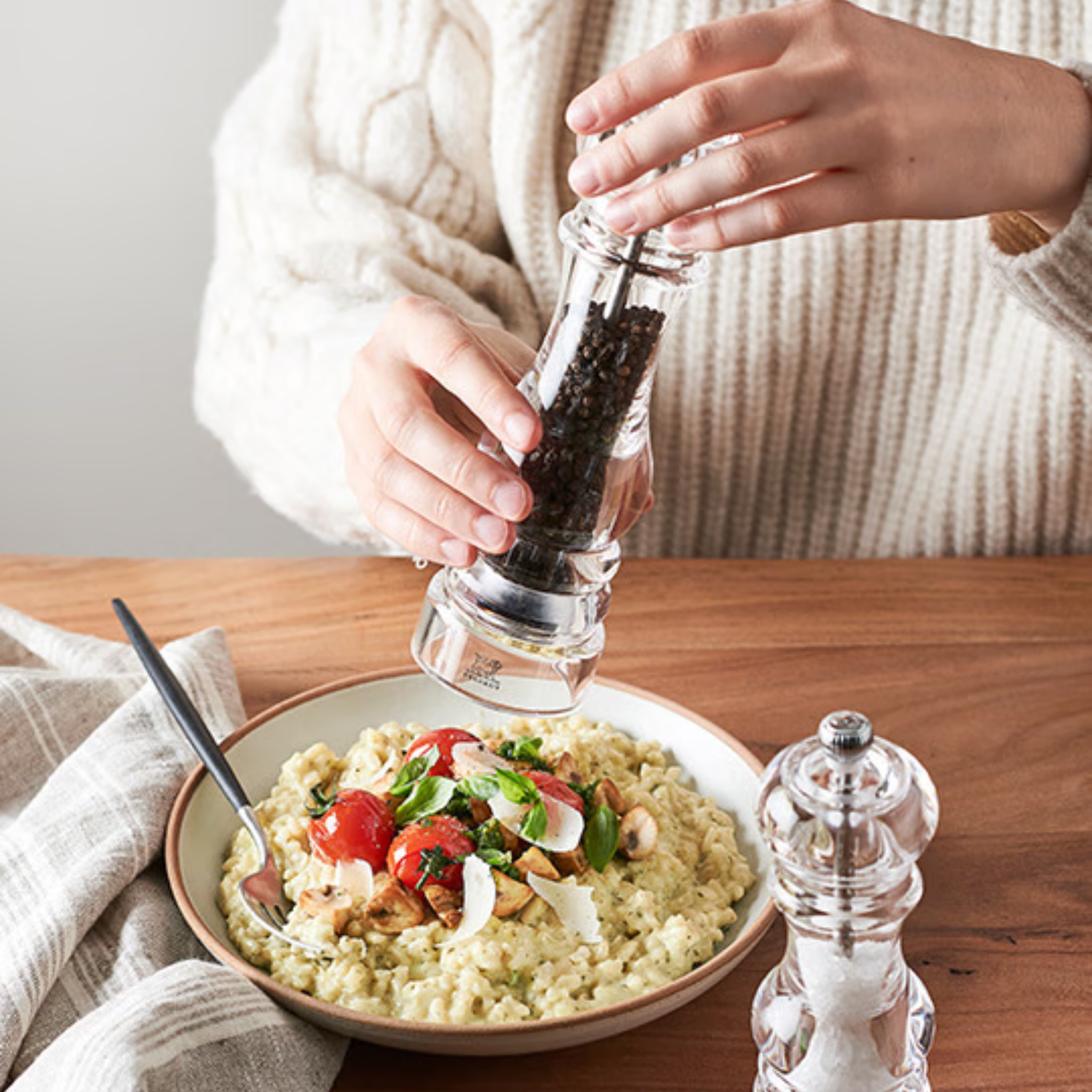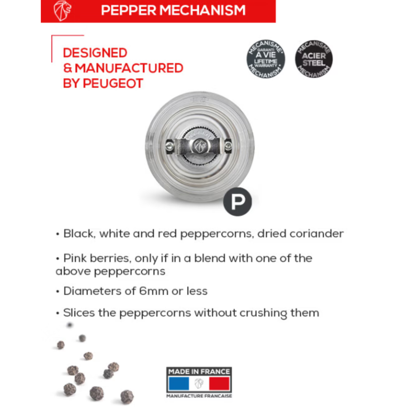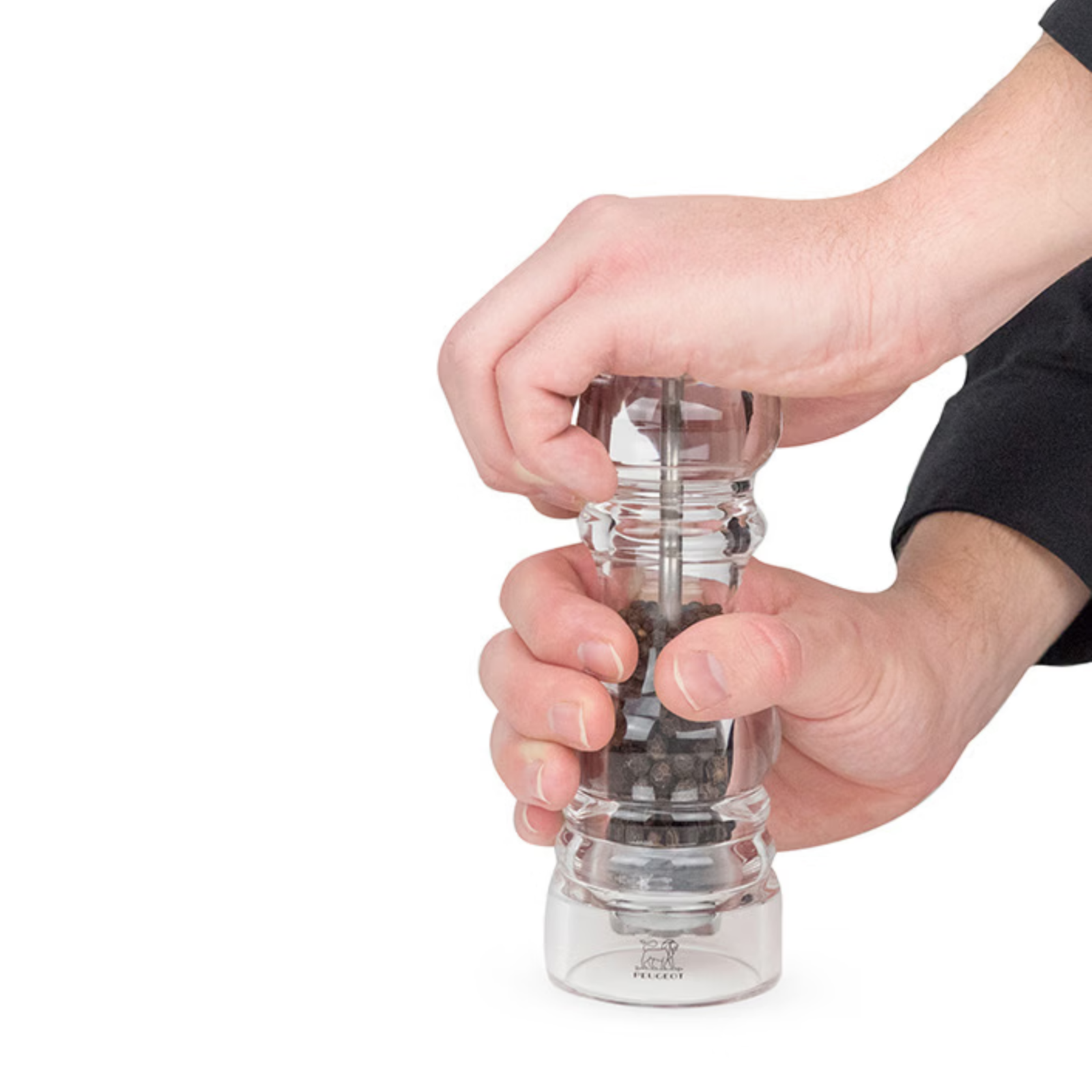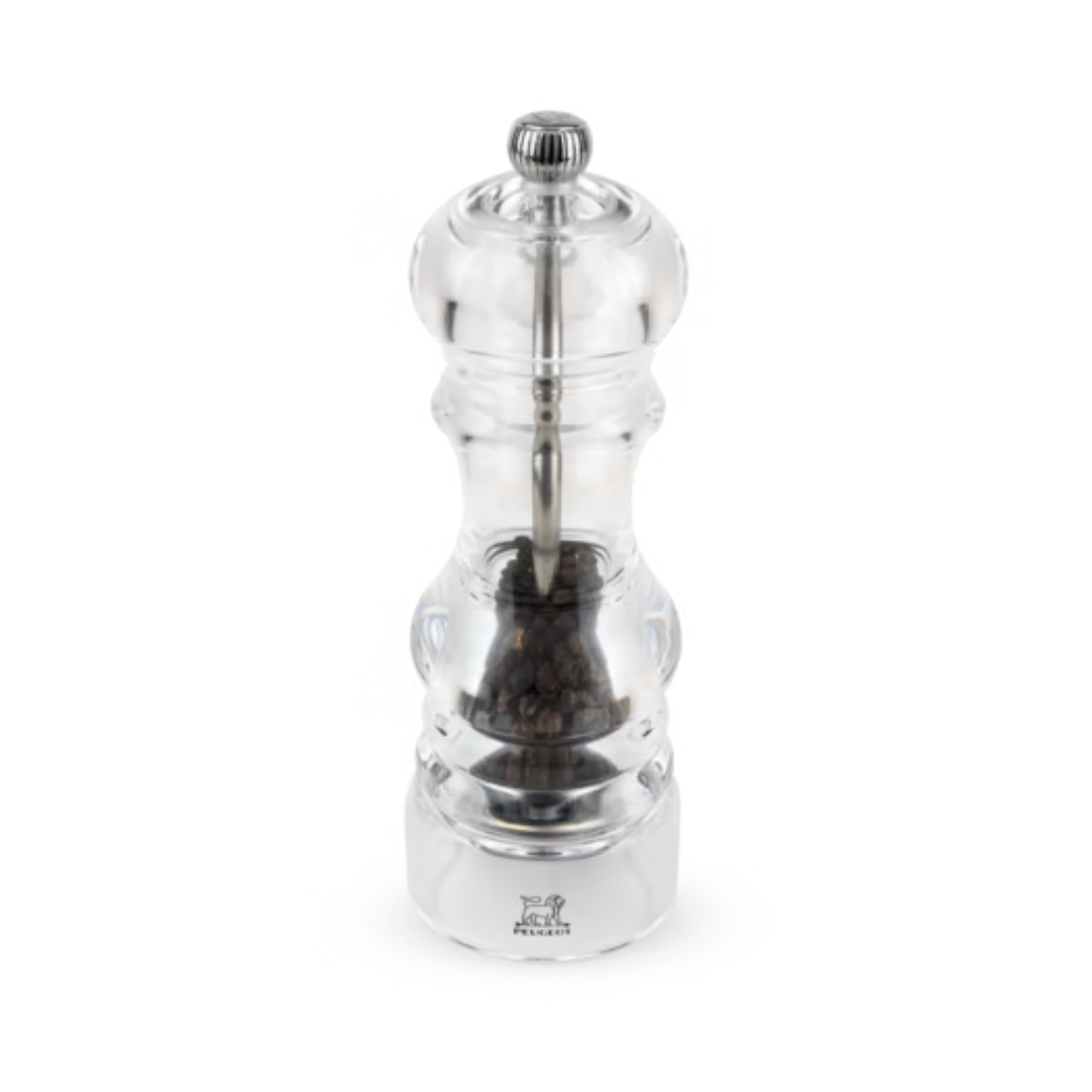 With its timeless design, the Peugeot Nancy 18 cm pepper mill is an essential for the table and the kitchen. Produced entirely in acrylic, it shows off its contents and means that the reservoir being empty is never a sudden surprise.