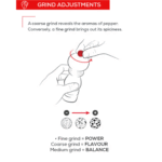 The adjustment knob, placed on the top of the mill, is used to adjust grinding precisely, from the finest to the coarsest, to exactly match the flavours that you want.