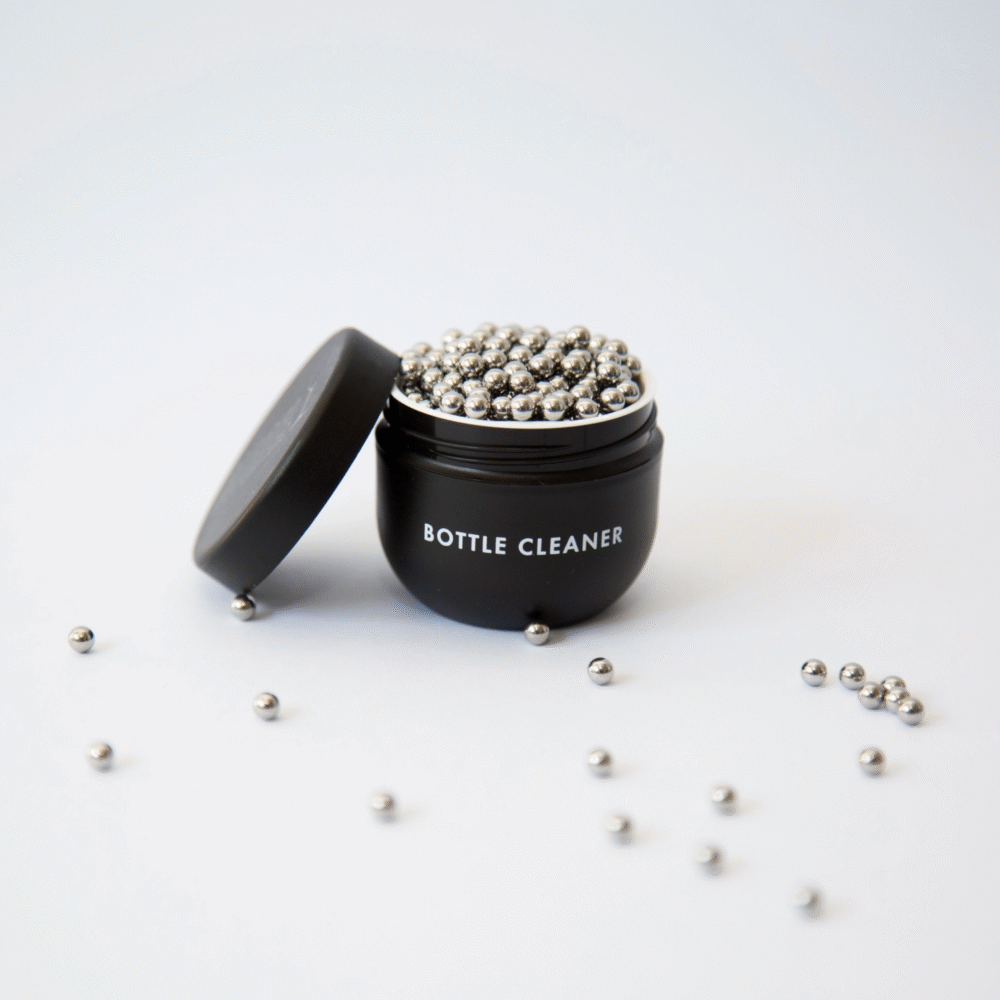 These tiny stainless steel beads remove dirt, residue, sediment, and superficial stains from inside the decanter.