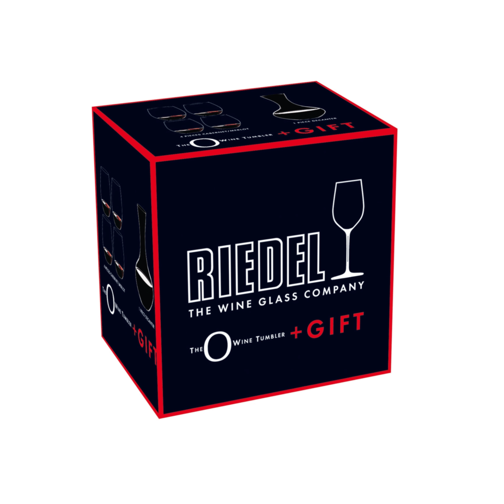 This set includes 4 O Wine Tumbler Cabernet/Merlot glasses and 1 Syrah decanter in an attractive value gift pack.