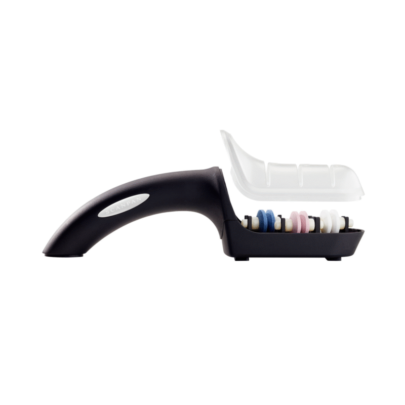 This SCANPAN Classic 3 stage ceramic water sharpener is extremely easy to use and recommended for sharpening SCANPAN knives and most other knife brands.