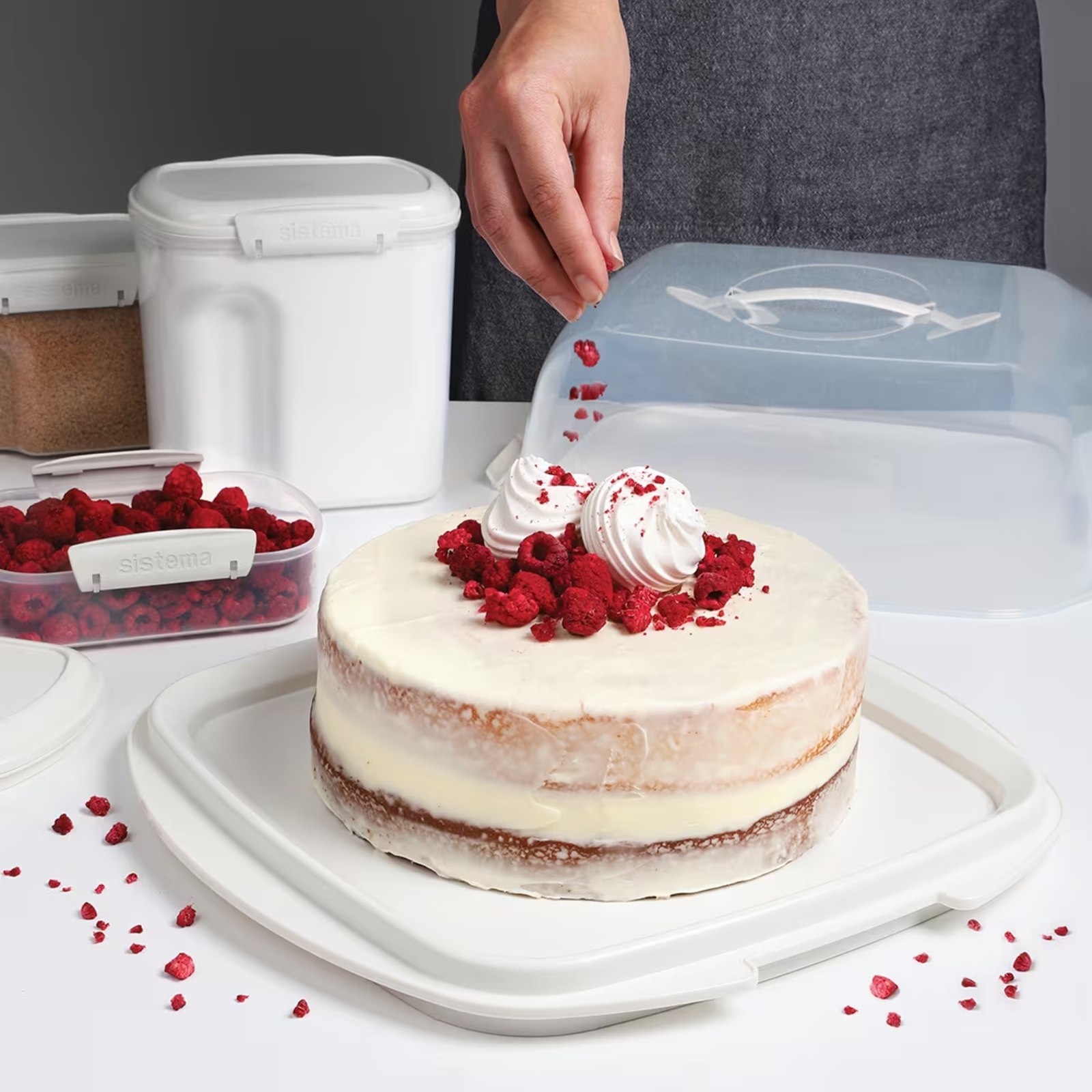 The Sistema® BAKE IT Cake Box is perfect for storing your baking. With an easy carry handle, flip base, and Sistema® easy locking clips, transporting your baking has never been easier.