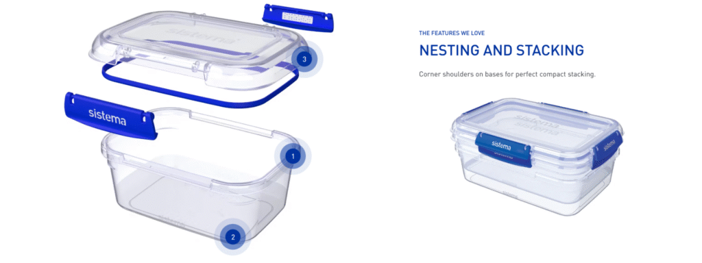 • Designed with a built-in flexible seal plus Sistema® easy-locking clips to keep food fresher for longer.