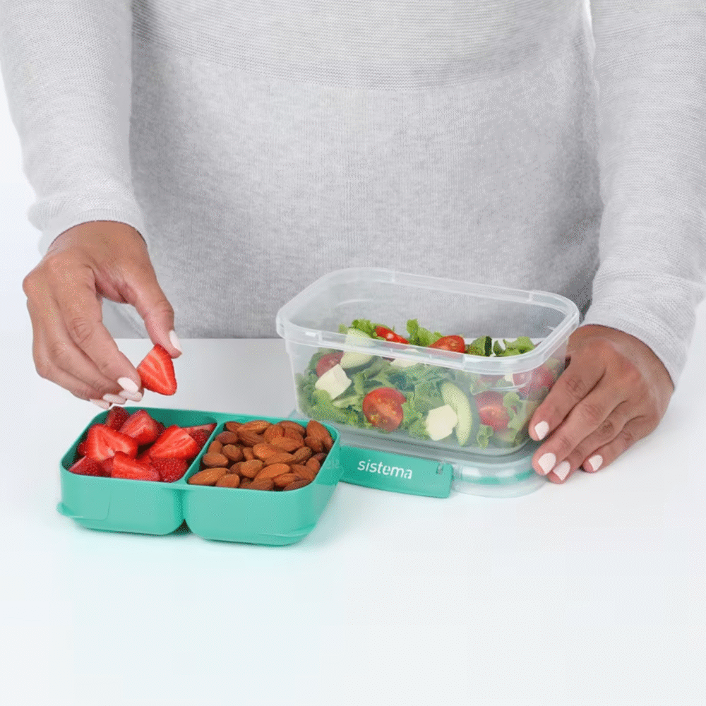 - Sistema® TO GO™ STAX™ containers can be used to reheat pre-cooked foods (without lid).