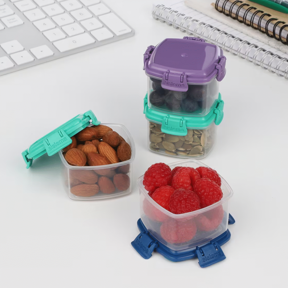 The Sistema® Mini Knick Knack TO GO™ containers are perfect for taking your snacks, mints and nuts on the go or storing paperclips, thumb tacks and much more.