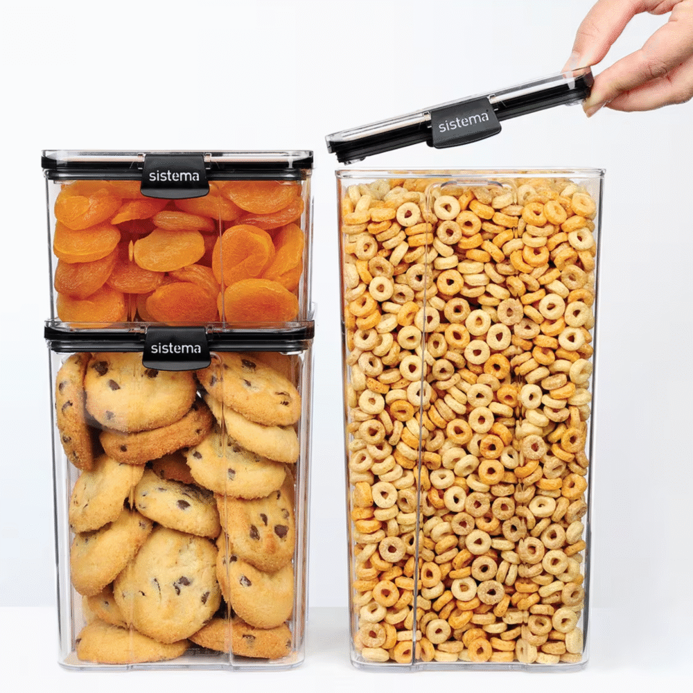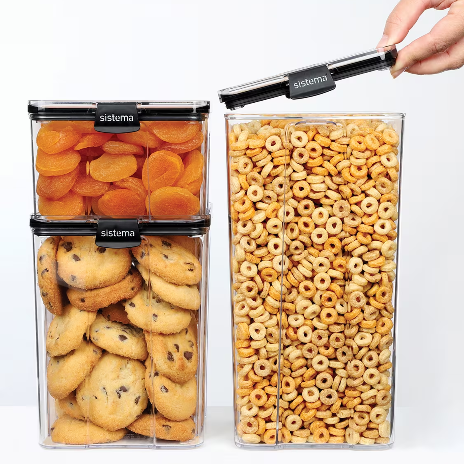 Sistema® Ultra™ clear containers can be stored perfectly on the counter top, kitchen drawers, pantry and fridge.