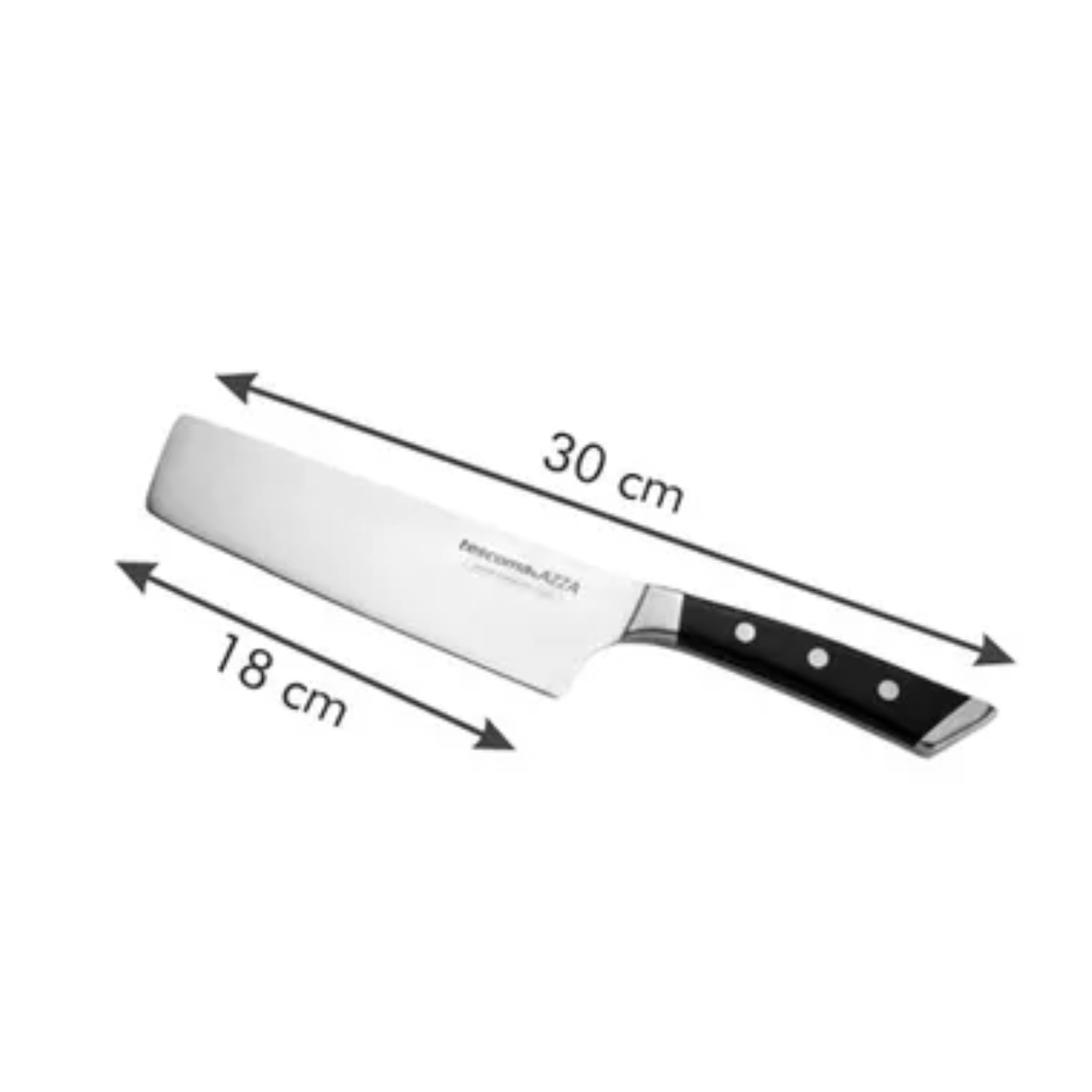 Traditional Japanese knife for cutting and chopping all kinds of food easily and quickly, excellent for cutting vegetables and other ingredients of Asian cuisine. Forged from a single piece of high-grade stainless steel, with a resistant blade, perfect cutting edge and ergonomic handle with solid rivets.