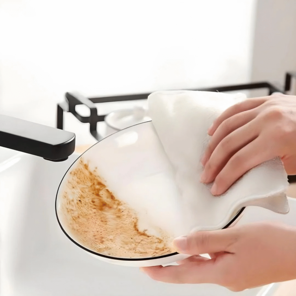 A multi-purpose cleaning cloth can be used to wipe sinks, range hoods, pots, cookpots and so on.