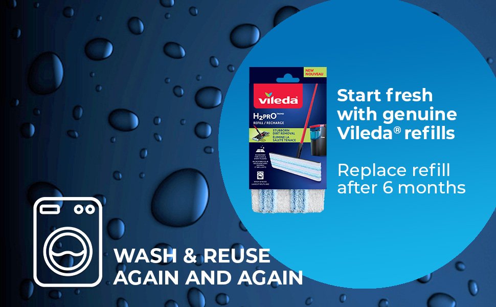 Stubborn Dirt Removal- The high-quality microfibre of Vileda’s H2PrO flat mop refill effectively removes stubborn dirt and ensures a streak-free finish on all types of floors
